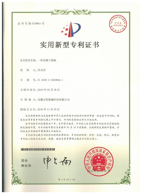 實用新型專利證書