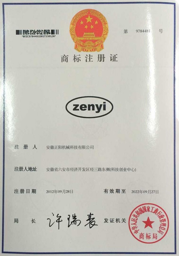zenyi商標證書